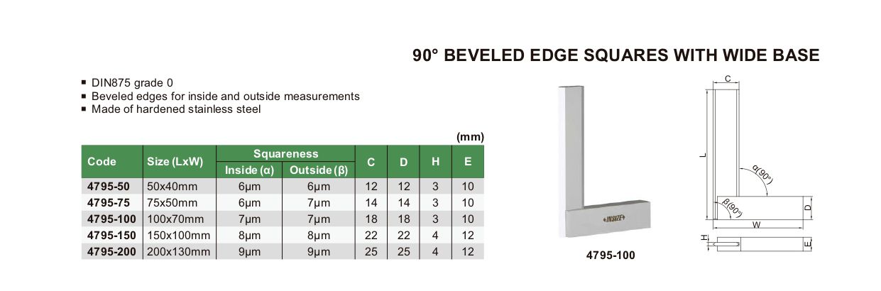 INSIZE 4795-75 90° Beveled Edge Square With Wide Base (75x50mm) | EMIN.CO.TH