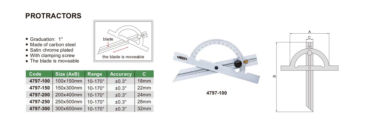 INSIZE 4797-100 Protractor (10-170°, 100x150mm) | EMIN.CO.TH