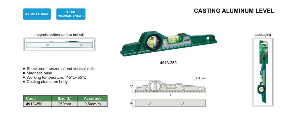 INSIZE 4913-250 Cast Aluminum Level (250mm; 0.5mm/m) | EMIN.CO.TH