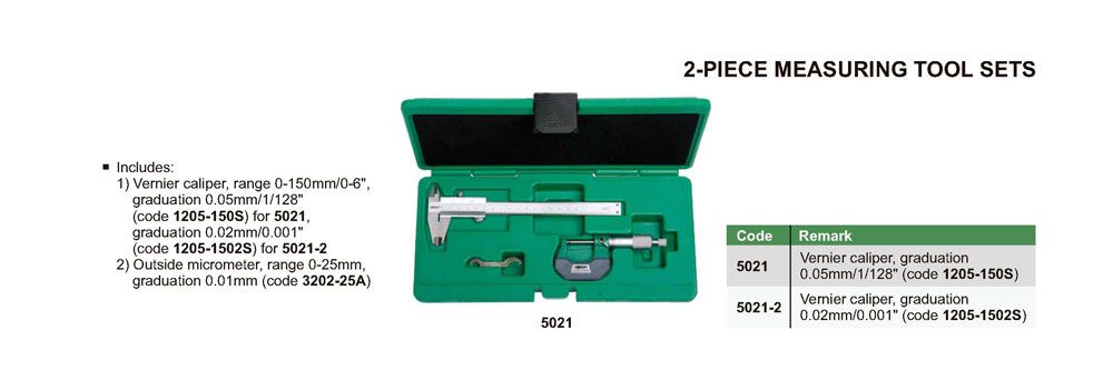 INSIZE 5021-2 2- Piece Measuring Tool Set (0-150mm/0-6", 0-25mm, 0.02mm/0.001") | EMIN.CO.TH