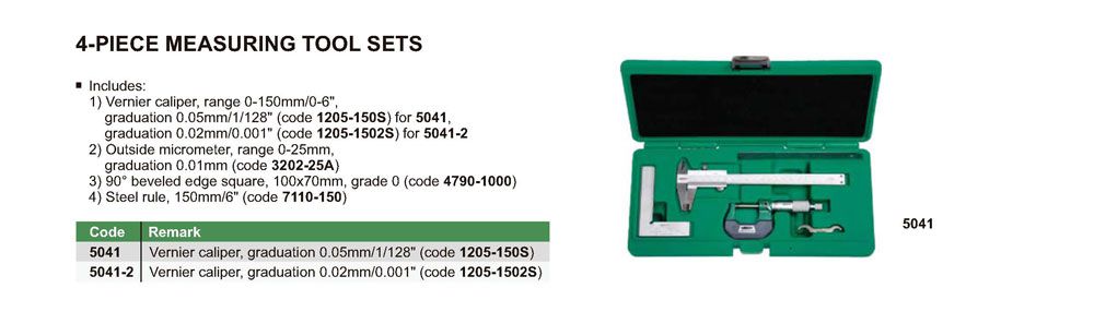 INSIZE 5041-2 4- Piece Measuring Tool Set (0-150mm/0-6", 0-25mm) | EMIN.CO.TH