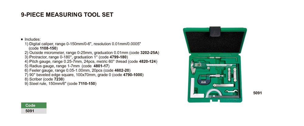 INSIZE 5091 9- Piece Measuring Tool Set | EMIN.CO.TH