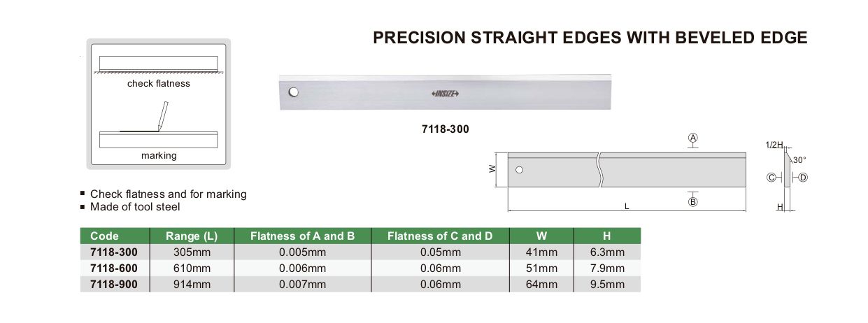 INSIZE 7118-300 Precision Straight Edge With Beveled Edge (305mm) | EMIN.CO.TH