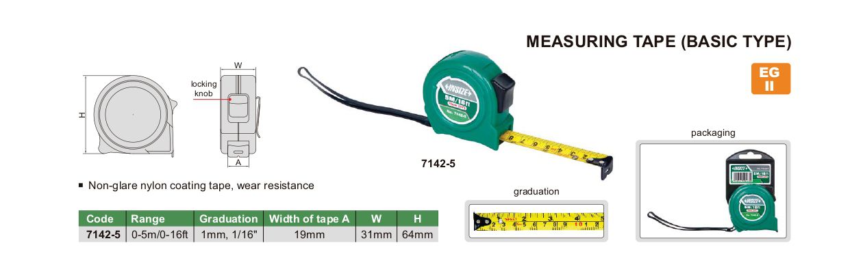 INSIZE 7142-5 Measuring Tape (0-5m/0-16ft) | EMIN.CO.TH