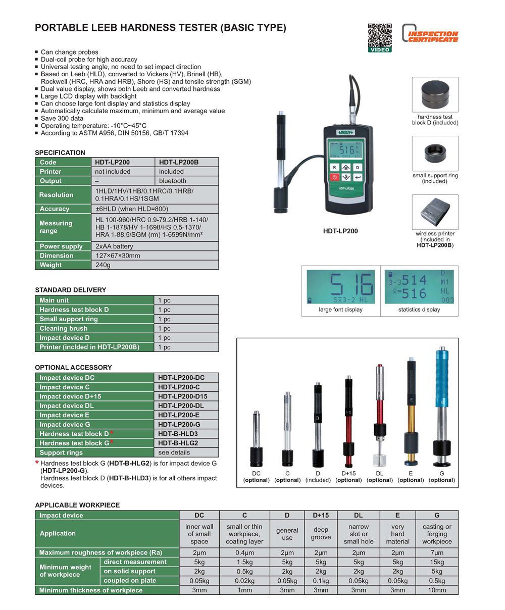 Measuring range: HL 100-960/HRC 0.9-79.2/HRB 1-140/HB 1-1878/HV 1-1698HS 0.5-1370/HRA 1-88.5/SGM (rm) 1-6599N/mm2