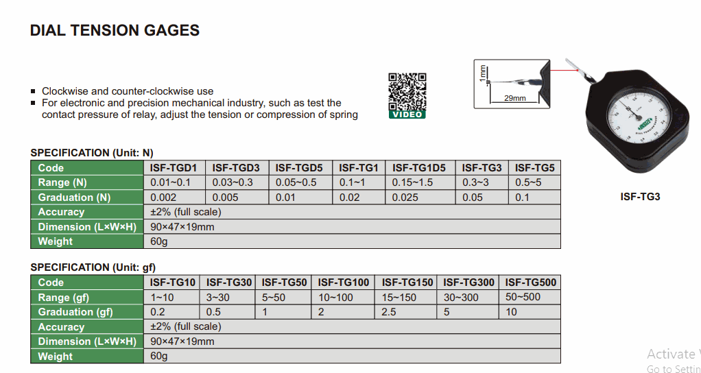 INSIZE ISF-TGD1 Dial Tension Gage (0.01~0.1N; 0.002N; ±2%) | EMIN.CO.TH
