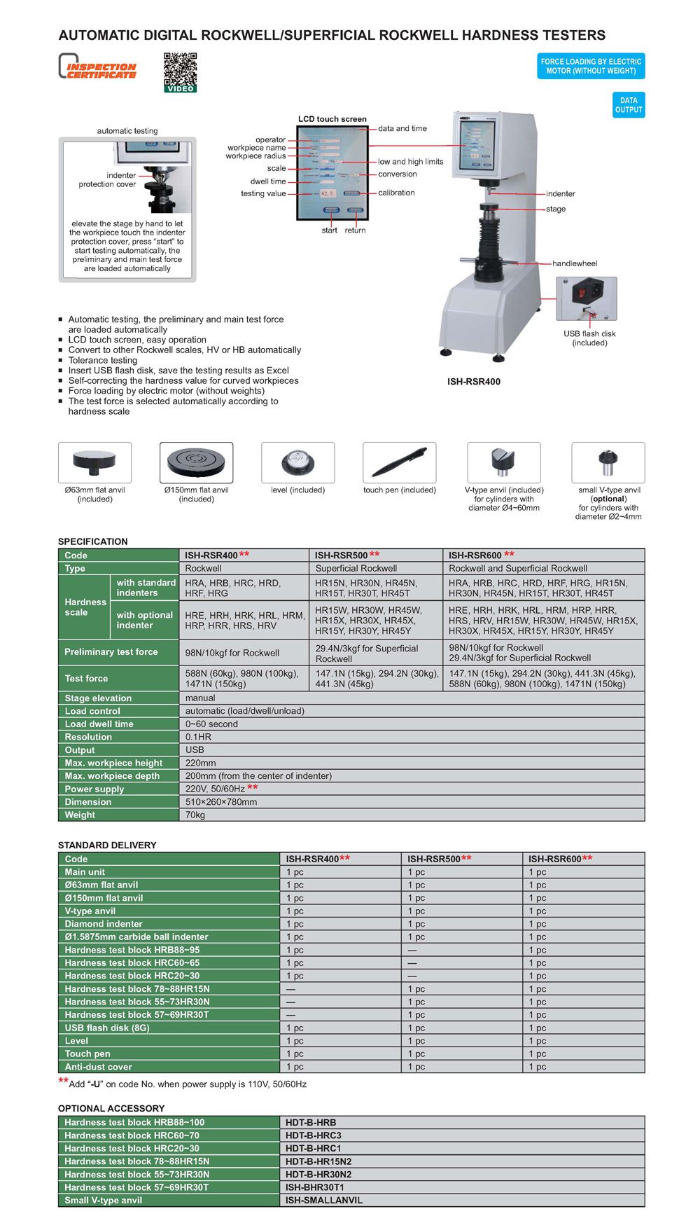 - Hardness test block HRC60~65: 1pc
