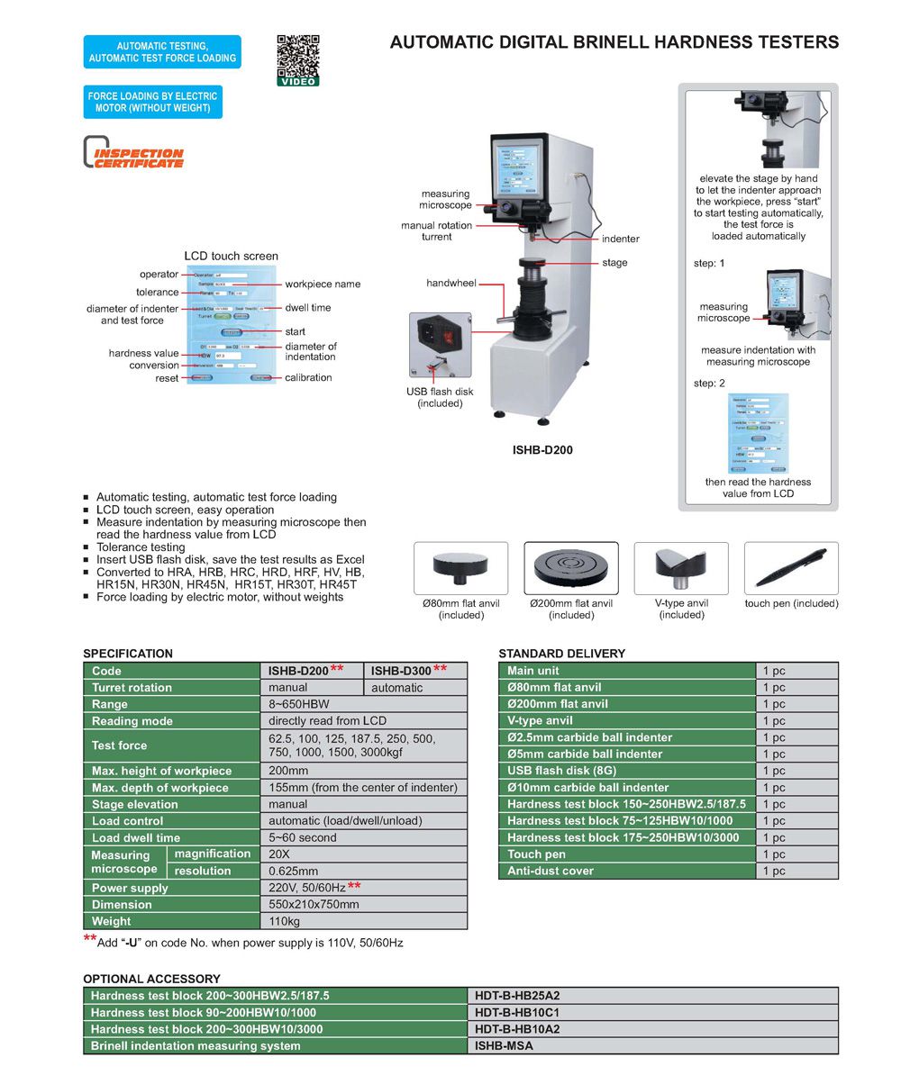 - Hardness test block 150~250HBW2.5/187.5: 1pc
