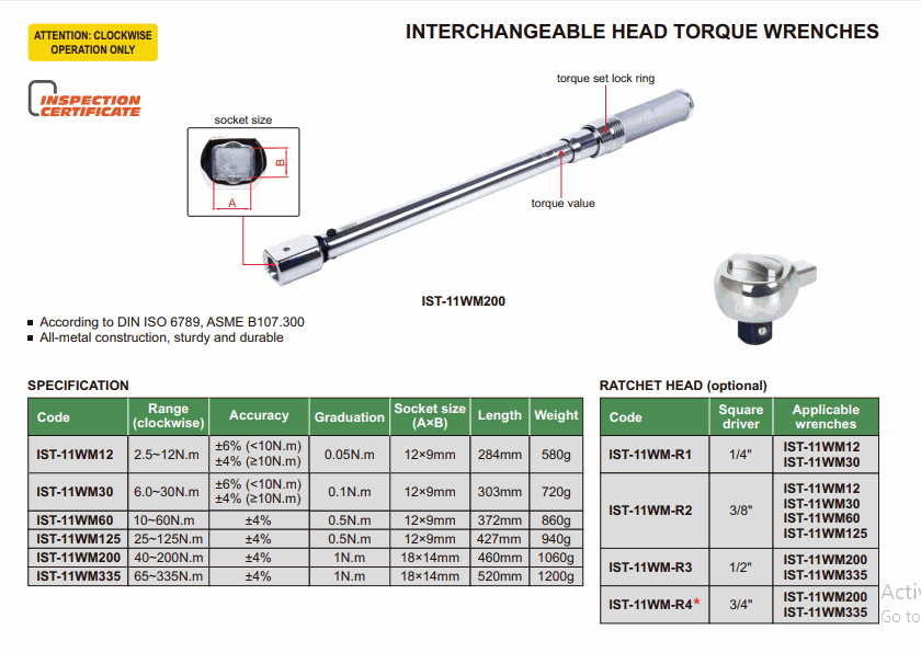 INSIZE IST-11WM125 Interchangeable Head Torque Wrench (25~125N.m; 0.5N.m) | EMIN.CO.TH