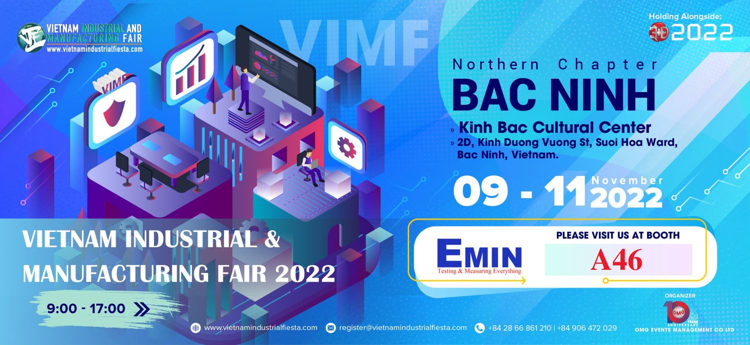 On November 9-11, 2022, EMIN will participate in Vietnam Industry and Manufacturing Exhibition - VIMF 2022 at Kinh Bac Cultural Center, Bac Ninh. This is an international exhibition specialized in manufacturing, mechanical engineering and supporting industries with a large gathering of leading enterprises from Vietnam, Singapore, Korea, Japan, and Thailand. , Malaysia, Germany, USA, India, Italy…