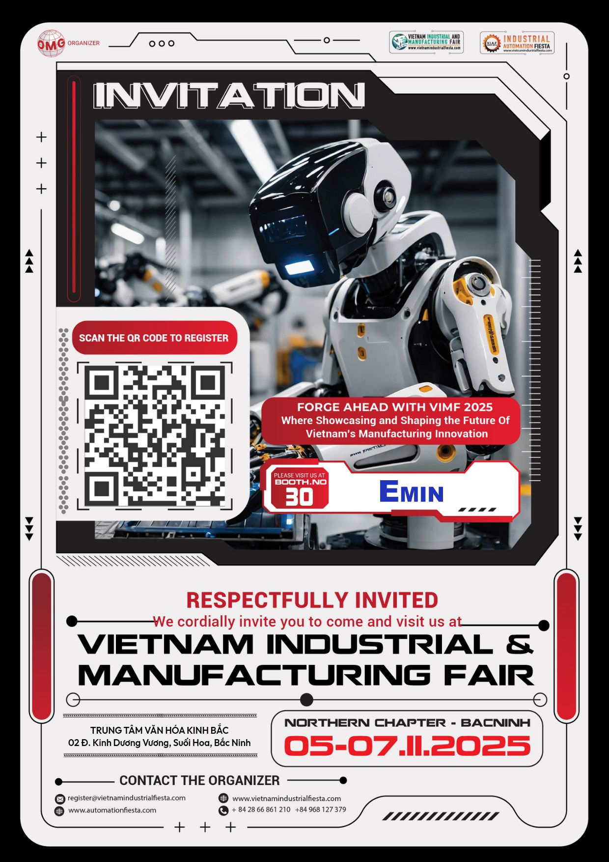 EMIN GROUP is pleased to announce its participation in the Vietnam Industrial & Manufacturing Exhibition 2025 (VIMF Bac Ninh 2025), the leading trade event in the ASEAN region, taking place from November 5-7, 2025 at Kinh Bac Cultural Center, Bac Ninh City.