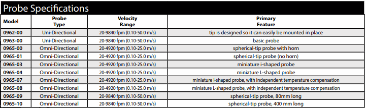 Power consumption rate is subject to change according to conditions such as air velocity, probe type and use of display.