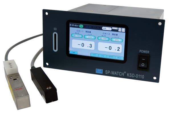 The SP-WATCH® (KSD-0110) is electrostatic potential monitoring equipment. With an interface for connecting our sensor KS-2001, KS-2001A or KS-2100, it performs real-time static electricity measurement.