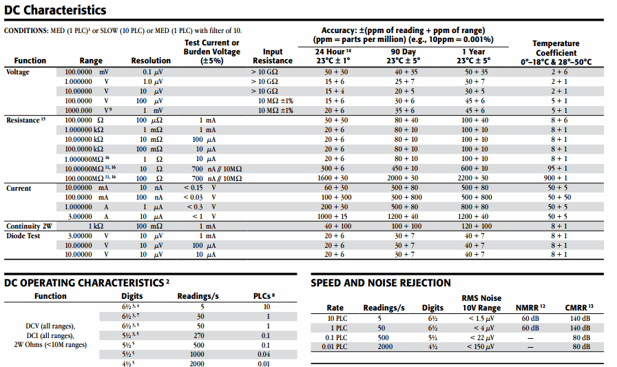 DCV: 100mV, 1V, 10V, 100V, 1000V/0.1µV~1mV/ 0.003%