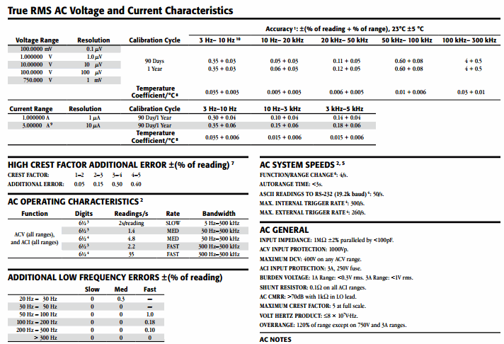 ACV: 100mV, 1V, 10V, 100V, 750V/ 0.1µV~1mV/0.11%