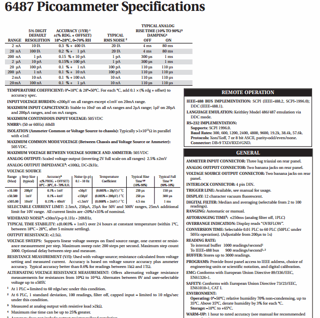 KEITHLEY 6487 Picoammeter/ Voltage Source (20mA, 0.3%) | EMIN.CO.TH