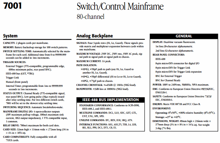 KEITHLEY 7001 Switch/Control Mainframe | EMIN.CO.TH