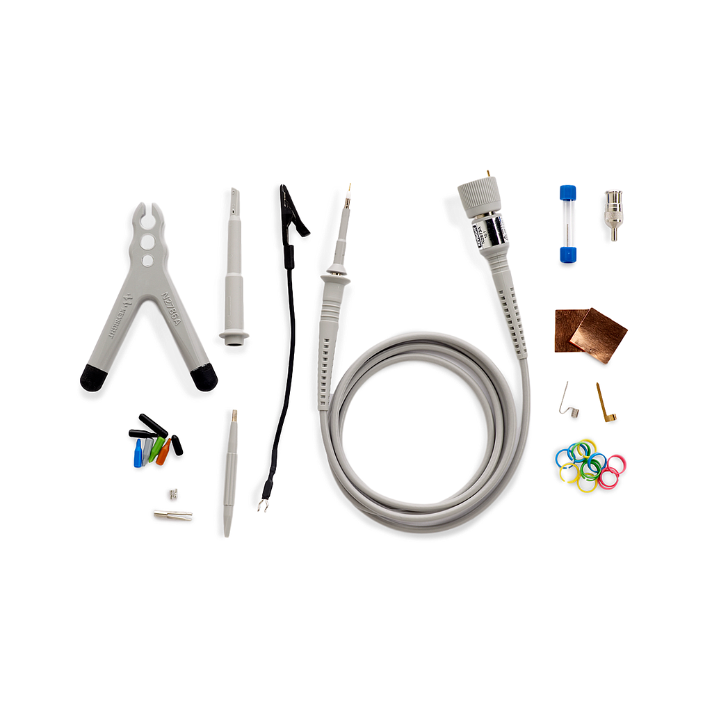 The sharp, spring-loaded probe tip keeps the probe from slipping off the device under test. Insulating IC caps helps you center small probe tip on the IC lead, so it doesn't short adjacent leads. Reduce ground inductance while easily accessing the ground with our standard flat blade ground connector and self-adhesive copper ground pad. Optional probe tip accessories provide specialized capabilities for demanding applications.