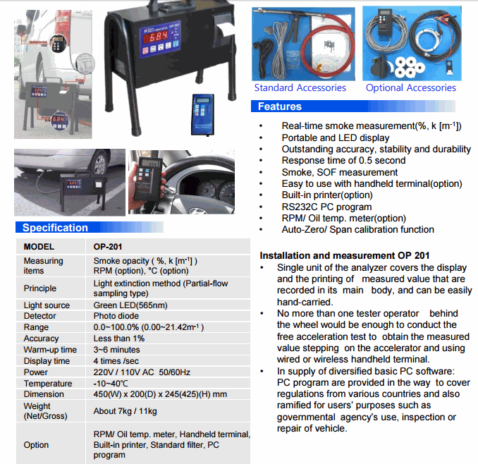 Measuring items Smoke opacity ( %, k [m-1] )