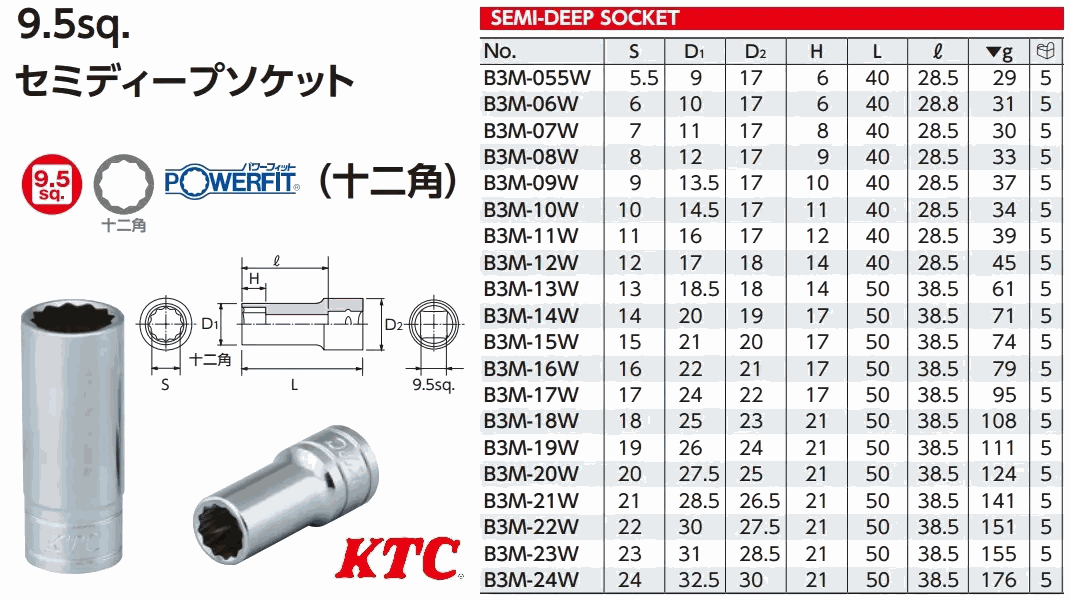 KTC B3M-15 sq. SEMI-DEEP SOCKET (3/8",6pt) | EMIN.CO.TH