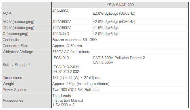 KYORITSU KEWSNAP200 AC Clamp Meter (AC 400A) | EMIN.CO.TH