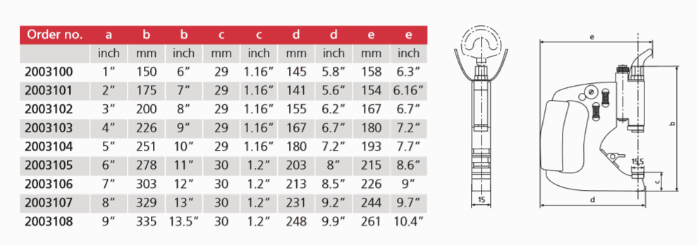 • Patented “Channel Lock” design assures precise parallel anvil surfaces throughout the full 25 mm / 1“ range of adjustment