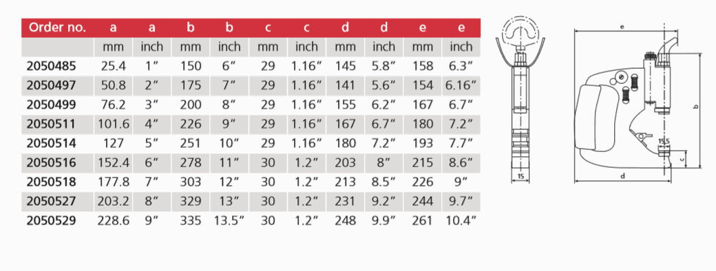 • Patented “Channel Lock” design assures precise parallel anvil surfaces throughout the full 25 mm / 1“ range of adjustment