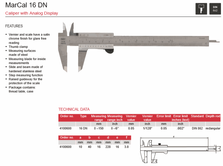 Mahr 4100600 Caliper With Analog Display (16DN, 0-150mm) | EMIN.CO.TH