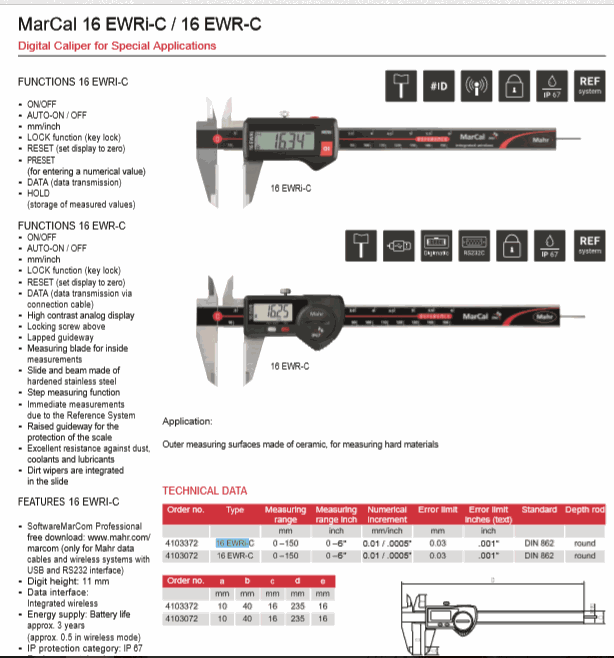 Mahr 4103372 Digital Caliper for Special Applications (16 EWRi-C,0-150mm) | EMIN.CO.TH