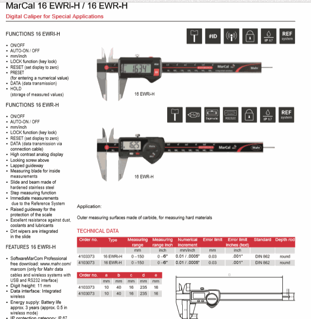 Mahr 4103373 Digital Caliper for Special Applications (16 EWRi-H,0-150mm) | EMIN.CO.TH