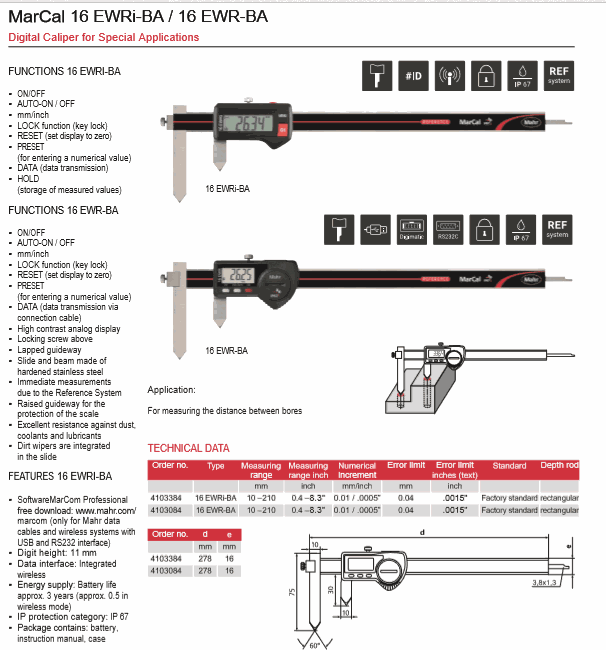 Mahr 4103384 Digital Caliper for Special Applications (16 EWRi-BA, 10-210mm) | EMIN.CO.TH