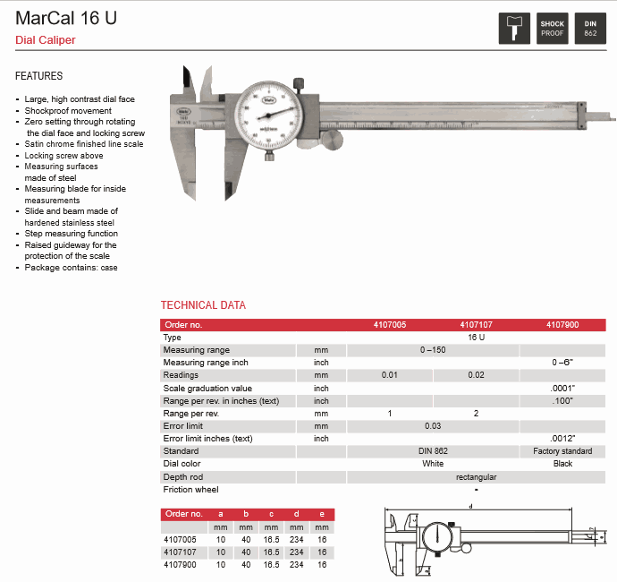 Mahr 4107107 Dial Caliper (0 - 150mm, 0.02mm, 16U) | EMIN.CO.TH