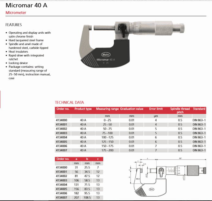 Mahr 4134007 Micrometer (40A, 175-200mm) | EMIN.CO.TH