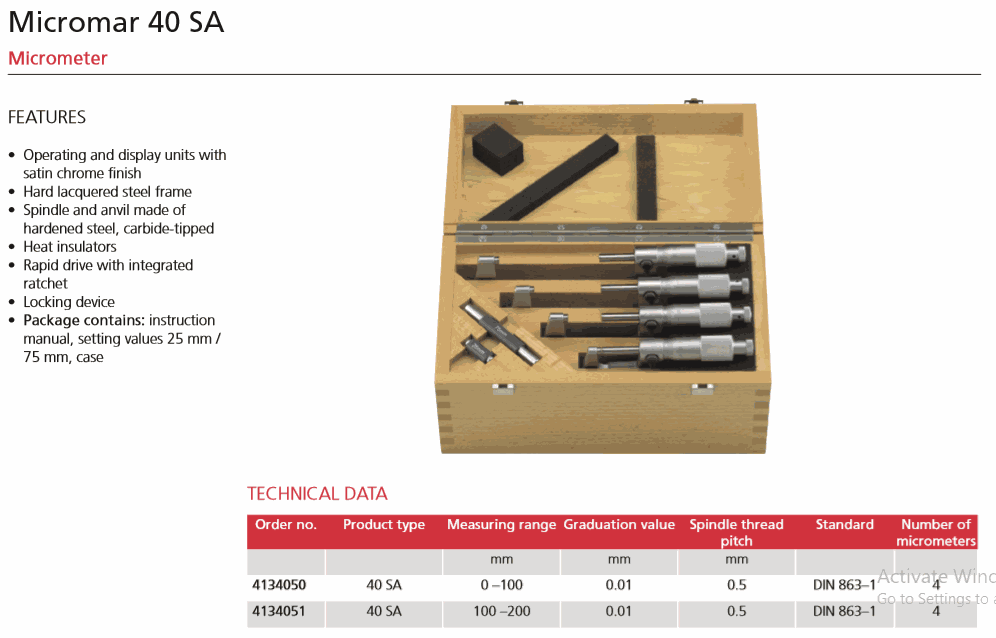 Mahr 4134051 Micrometer (40 SA, 100-200mm) | EMIN.CO.TH