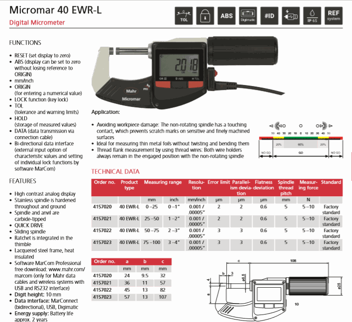Mahr 4157021 Digital Micrometer (40 EWR-L, 25-50mm/1-2") | EMIN.CO.TH