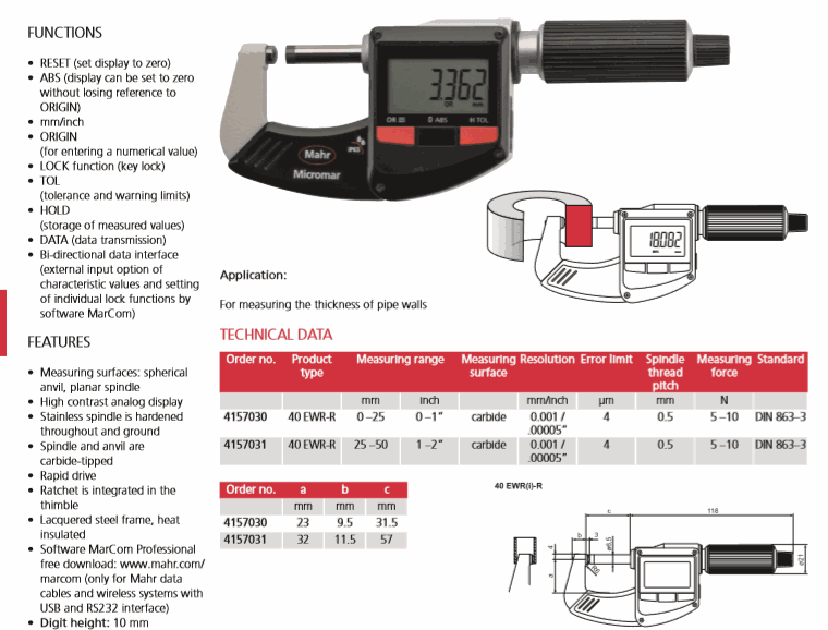 Mahr 4157031 Digital Micrometer (40 EWR-R, 25-50mm/1-2") | EMIN.CO.TH