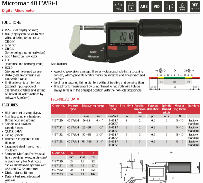 Mahr 4157120 Digital Micrometer (40 EWRi-L, 0-25mm/0-1") | EMIN.CO.TH