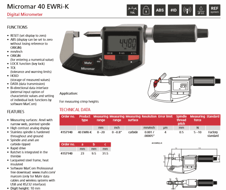 Mahr 4157140 Digital Micrometer (40 EWRi-K, 0-20mm/0-0.8") | EMIN.CO.TH
