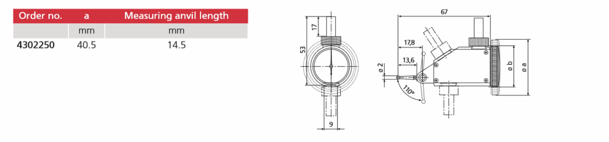 Package contains: case, instruction manual, spanner for changing the styli, stylus dia. ø 2 mm, mounting shaft 800a8