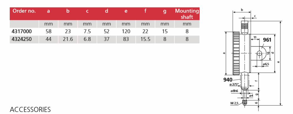Measuring force incoming measuring pin N: 0.7 – 1.1
