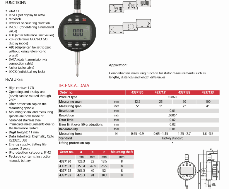 Numerical increment: 0.01mm/.0005”