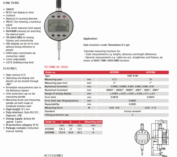 Numerical increment: 0.0001, 0.0005, 0.001, 0.002, 0.005, 0.01mm/.00001”, .00002”, .00005”, .0001”, .0002”, .0005”