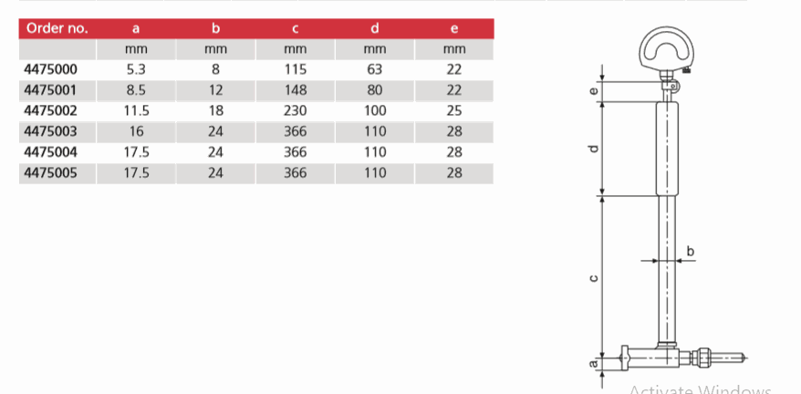 Measuring depth extension (250 mm) for measuring range 18 – 50 mm, type 844 Nv