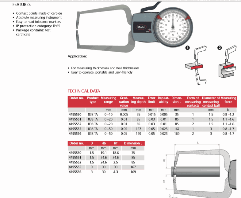 Mahr 4495555 Gage For External Measurement (838 TA, 0 – 50mm, 0.05mm) | EMIN.CO.TH