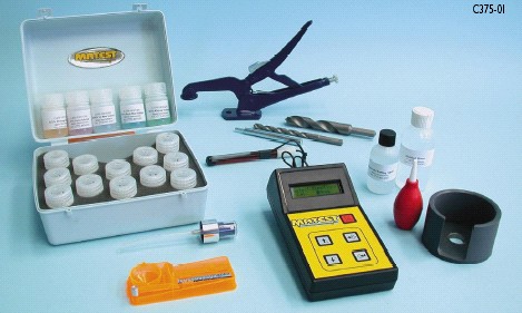 Electronic meter, high impedance with temperature compensation and microprocessor for direct conversion to percentage of chloride. Battery powered.
