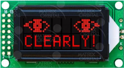 Matrix Orbital LCD0821-R-V-E LCD Character Displays 8x2 Red Txt, Blk BG Wide Volt, Ext Temp | EMIN.CO.TH