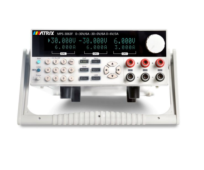 + Voltage: CH1: 0~30V, CH2: -30~0V, CH3: 0~6V