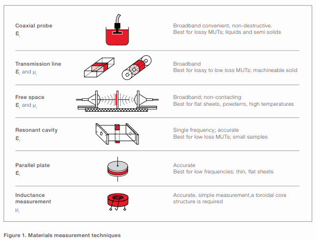 Keysight offers a variety of fixtures and measurement instruments that covers many material types. The software is also provided depending on required measurement techniques or instruments. See related literature for more information.
