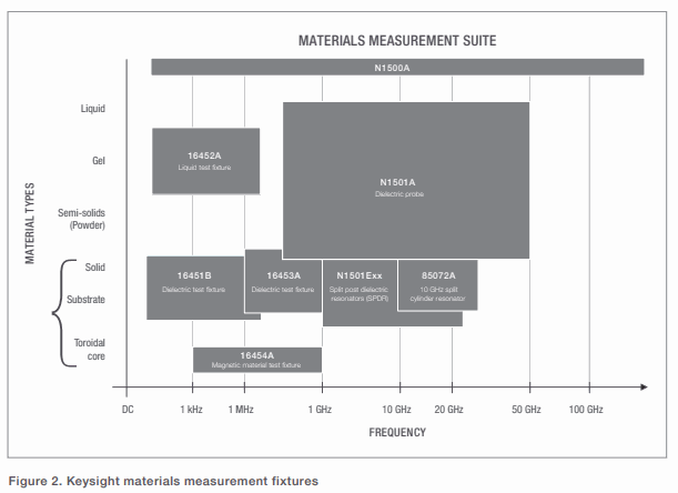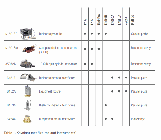 The lineup of Keysight test fixtures is summarized in Figure 2. See Table 1 for available measurement instruments.