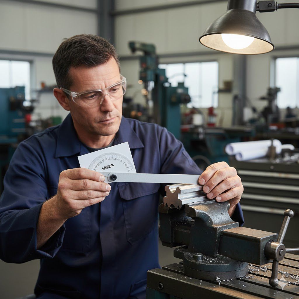 The QC department checks the angles of CNC details, determines the angles of welds in steel structures, and verifies them against technical drawings before shipment. Maintenance engineers measure the inclination of conveyor belts, pipelines, and align couplings or pulleys to maintain stable operation and extend equipment lifespan. Installers use the protractor to align angles when erecting frames and shelves, ensuring accuracy and neatness.